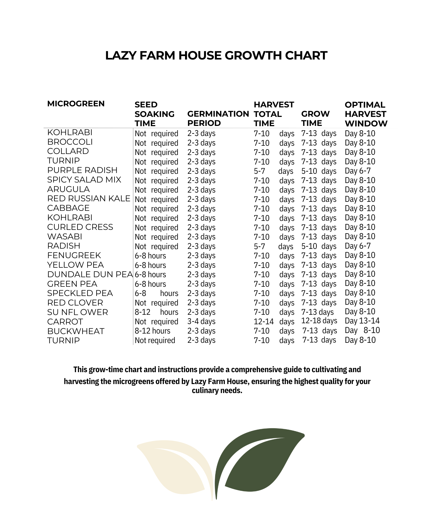 Growing times for our Microgreens